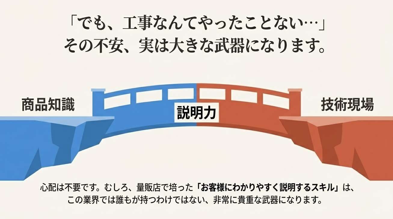むしろ、量販店で培った「お客様にわかりやすく説明するスキル」は、この業界では貴重な武器になります。