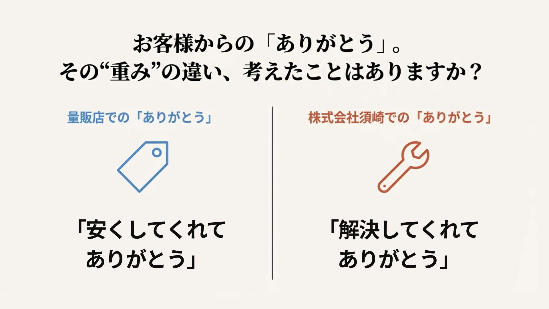 1. 「安くしてくれてありがとう」vs「解決してくれてありがとう」