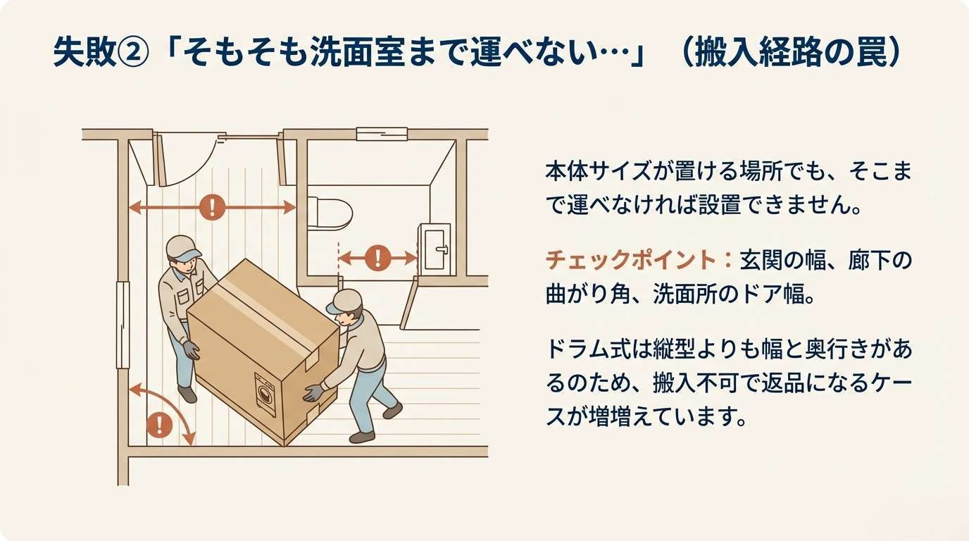 失敗②「そもそも洗面室まで運べない…」(搬入経路の罠)